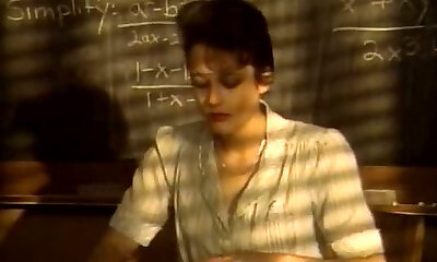 Short haired kinky brunette college professor deepthroats strong cock for spunk