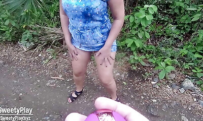 Real outdoor sex picnic with a sizzling puny dark-haired on a summer vacation in nature next to the road
