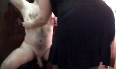 Fat redhead tied up and tortured by a ash-blonde fit damsel on the couch