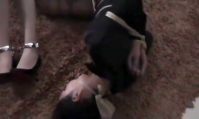 CFNM femdoms blow bondage dude outdoor