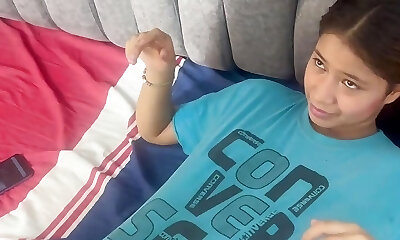 I find my tiny stepsister with my clothes on, I take them off and I fuck her hard until I jizm in her vagina