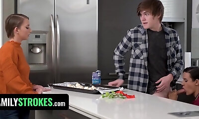 Kinky stepmom Penny Barber tricks stepkids into 3some fuck
