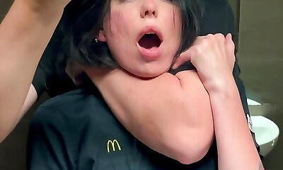 Risky public hookup in a restroom. Plumbed a McDonald's employee over spilled fanta! - Eva Soda